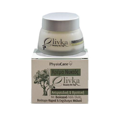 Nigh cream anti-ageeing and nourishing action. Including biological olive oil,that has powerful anti-oxeidant properties and prevents skin from premature ageeing. With honey extracts and carite butter, that nourishes, rejuvenates and moisturizing deep skin.